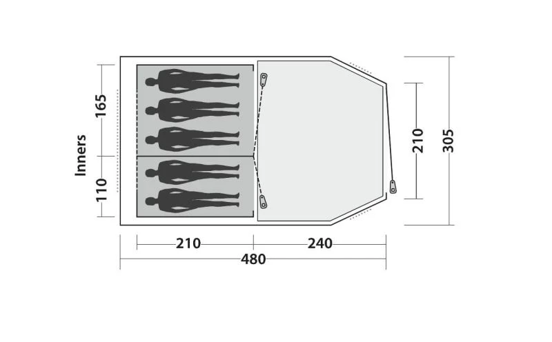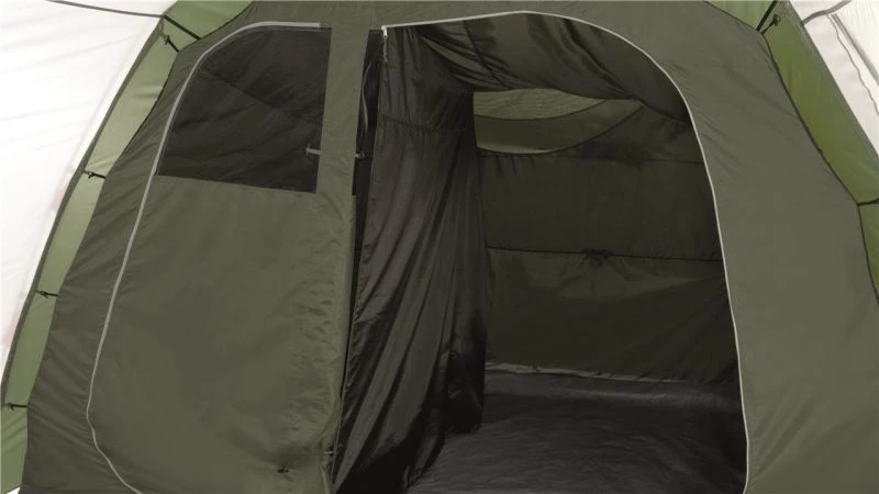 Compact windows are located on either side of the tent to give a view outside and curtains can toggle up into place to provide privacy when needed. Covered ventilation panels are located in the front and back of the tent to increase airflow and help reduce condensation. A toggled inner divider splits up the bedroom section and can be easily removed to make one big sleeping space.