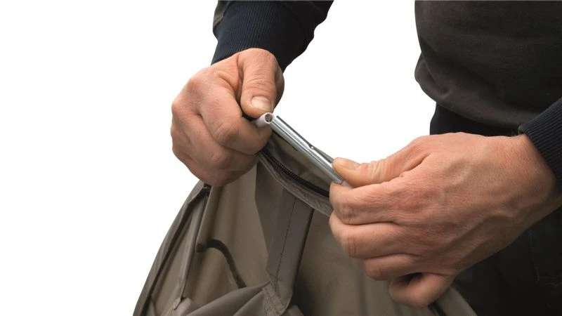 - Flap down or toggle up groundsheet in the door