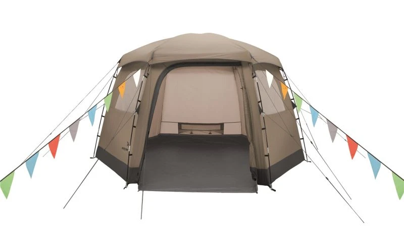 Throughout the tent, there are 6 large organiser pockets, Large windows (with toggle-up curtains), one low-level vent and an entrance that can be dropped down to make give you trip-free access or it can simply be zipped to the door for a tight seal. The Yurt also has 3 points to hang lanterns and due to the steep sidewalls to tent feels bigger than you think.