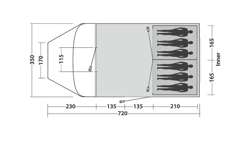A drop-down front door into the living area gives trip free access into the tent and makes it easier for pushchairs to enter. This same entrance has a mesh door built into it so you can increase the airflow inside the tent without having any insects join the party. The pre-angled poles help to increase the internal headroom and make the awning feel more spacious in relation to the floorplan.