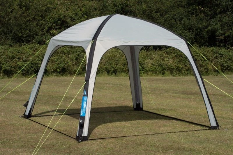 The Air Shelter comes in three sizes; a new smaller 200 size, which covers an area of 2 x 2 meters, the 300, which covers an area of 3 x 3 meters and the 400, which covers an area of 4 x 4 meters, all sizes come as standard with four removable side panels. These side panels are fixed by means of an easy ring-pin system. The shelter material is our premium Weathershieldâ„¢ 6000, a high quality material featured on many of their tents.