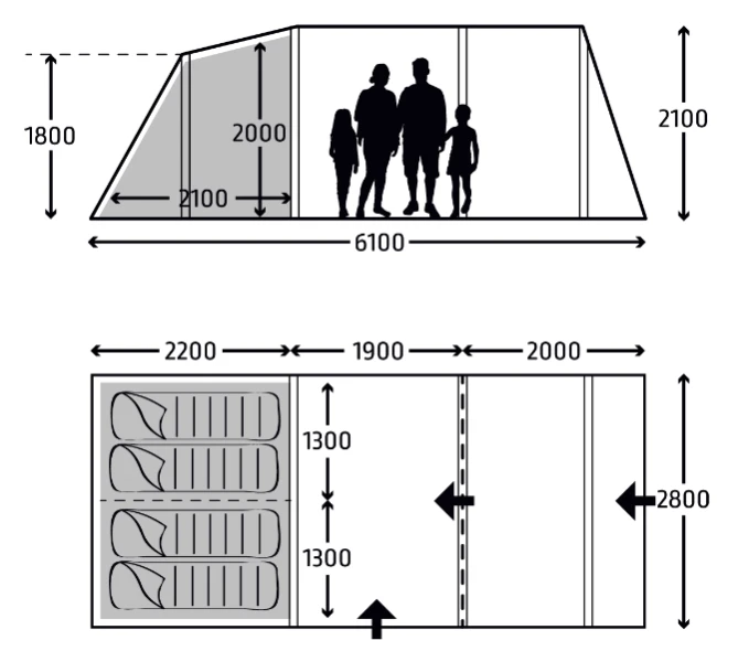 - Covered entrance – gives a sheltered entrance to your tent, which prevents rain from dripping into the living area