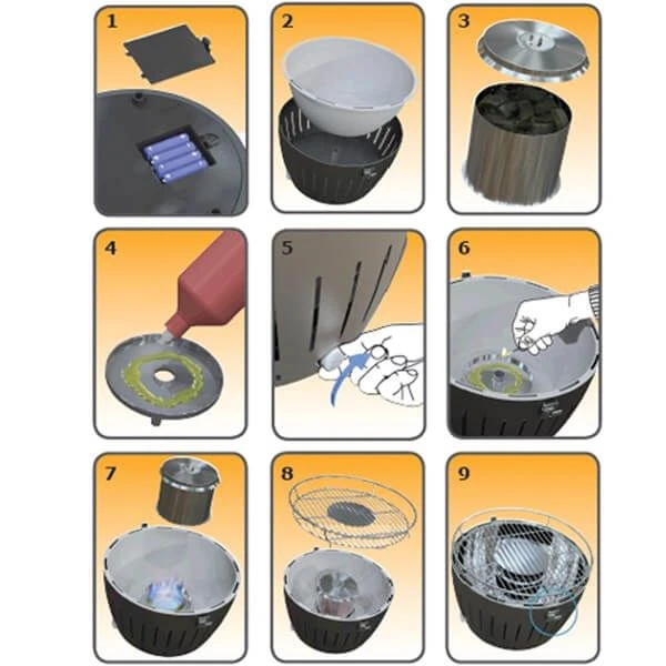 - Material – Steel and shock resistant plastics. Grid, inner bowl, charcoal container & latches – stainless steel.