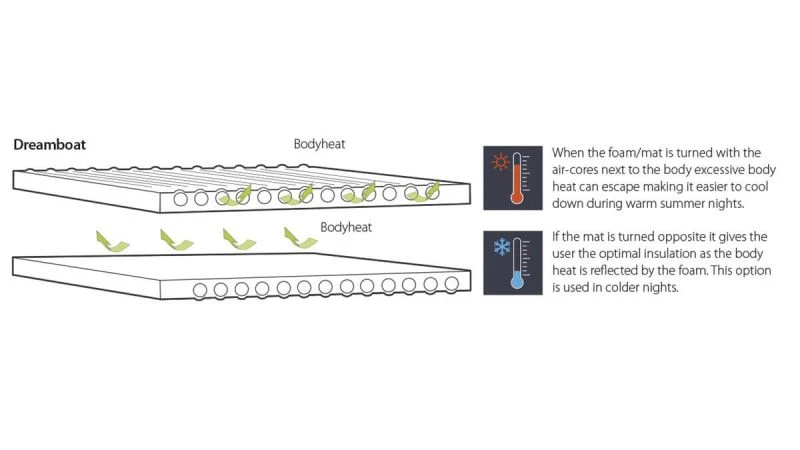 The Dreamboat Single 7.5 mat is a rectangular shaped mat designed for ultimate comfort. Its 3D shape is constructed with unique heat-regulating foam construction not only ensures a comfortable nights sleep, but it also reduces pack size remarkably.