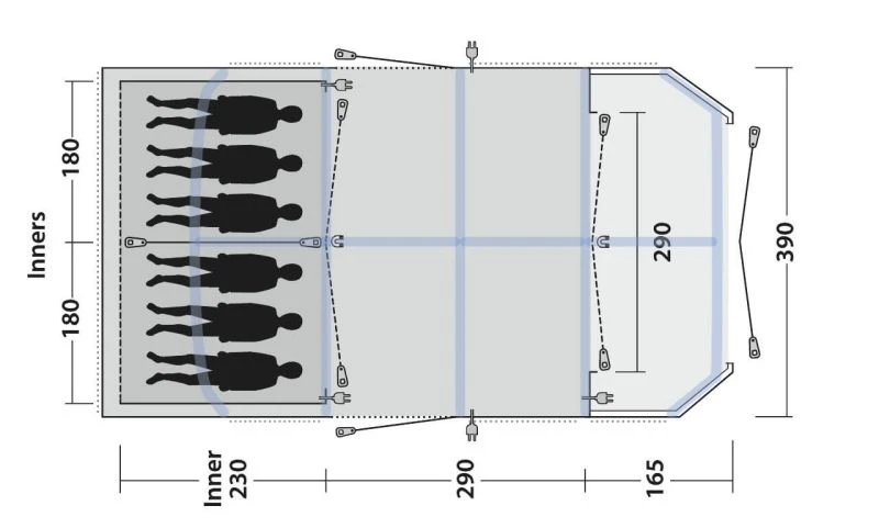 - Reliable, easy-to-operate inflate/deflate valves conveniently placed outside the flysheet