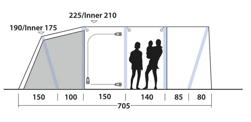 - Type of tent: Three room tunnel tent