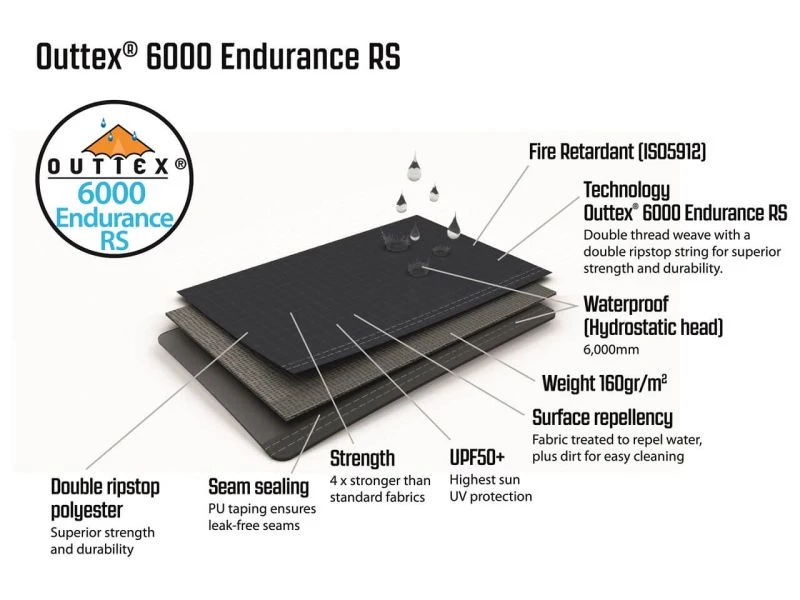 - Flysheet: Outtex® 6000 Endurance RS, 100% polyester