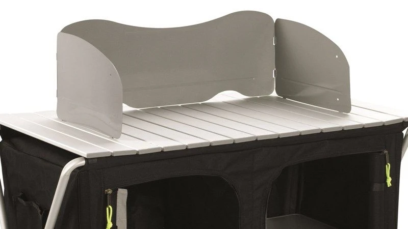 The useful cooking windshield from Outwell. Place on a tabletop/kitchen surface to shield your stove from the wind. Easy fixing using suction pads. Includes a practical carry bag.Â