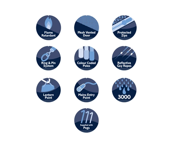 - Reflective guy ropes and all pegs included