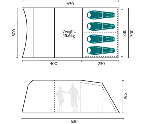 - 4 person capacity with sewn in porch canopy
