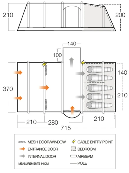 - High Cable Entry – Allows you to neatly run electrical cables out into the awning area at the front of the tent