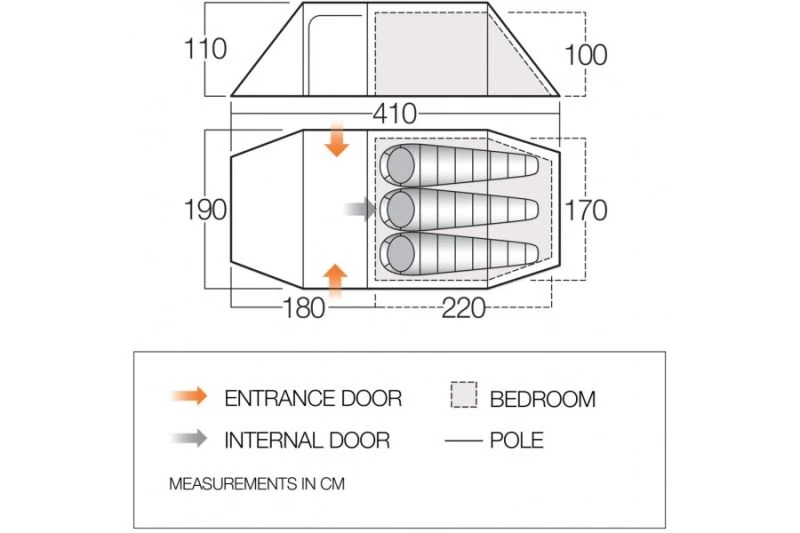 - Extra large porch space – With an extra pole the porch offers great space for storage. Keep wet kit out of the inner tent and enjoy greater flexibility, for minimal additional weight