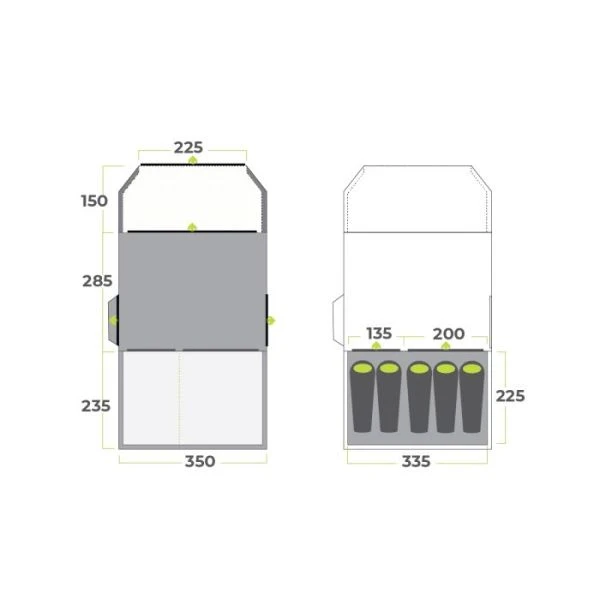- Configuration Features – Internal Living Area, Removable Inner, Bedroom Dividing Curtain
